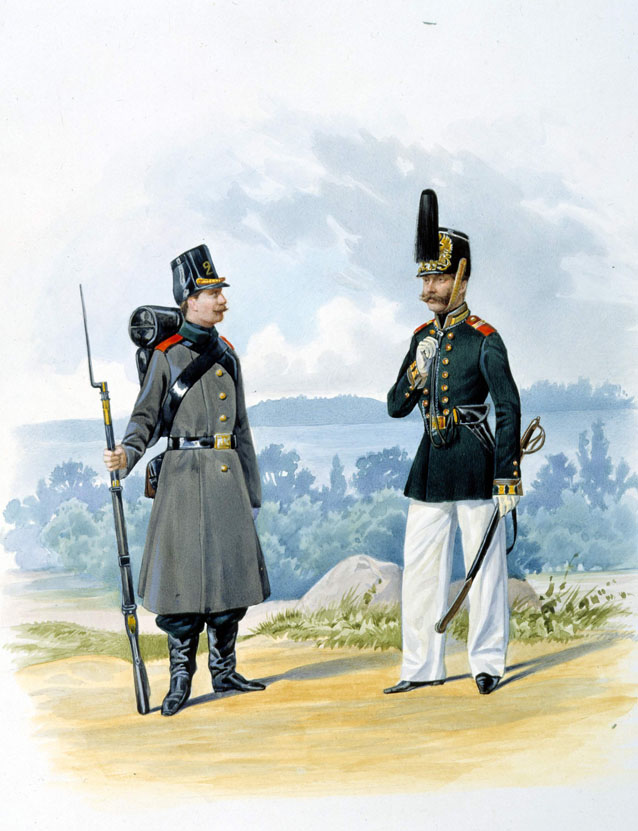 Фельдфебель Гвардейского экипажа в летней форме и матрос Гвардейского экипажа в походной форме. 1858-1862 гг.