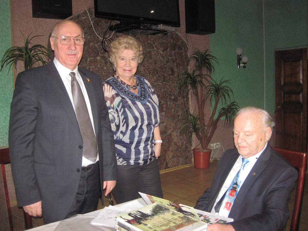 Г.И.Бякин (сидит) листает книгу